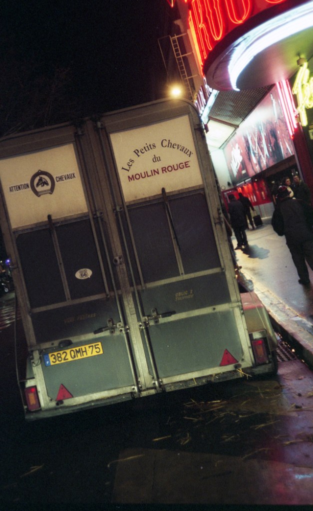 Les Petits Chevaux du Moulin Rouge horsebox, Boulevard de Clichy, Paris 18. February, 2010.