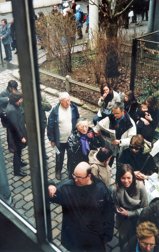 Queueing for a Robert Doisneau exhibition at the Henri Cartier Bresson Foundation building, Impasse Lebouis, Paris 14. February, 2010. photo Pete Grafton.