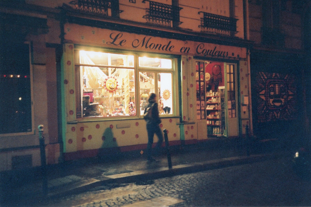 “Le Monde en Coleurs” shop at night, Montmartre, Paris 18. February, 2008.