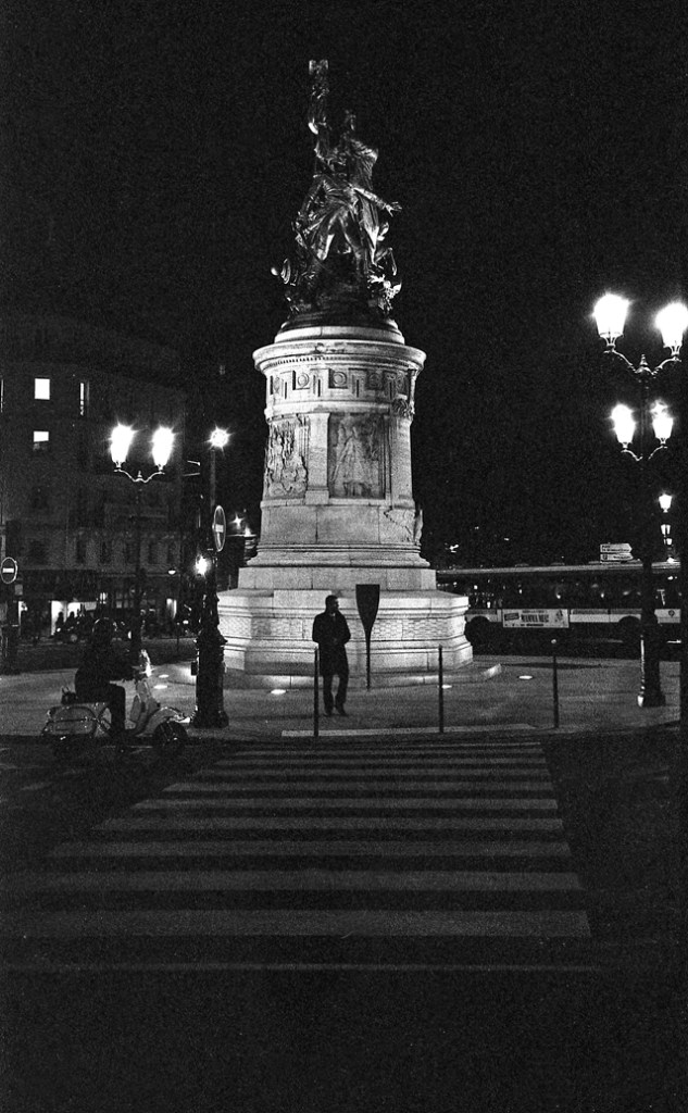 Statue at Place de Clichy, at night. Paris 18. November, 2010.