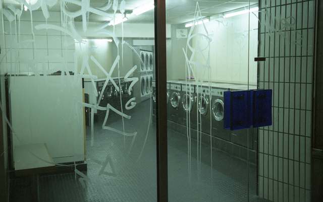 Empty laundrette, night-time, near Place de la Republique, Paris 11. January, 2008.