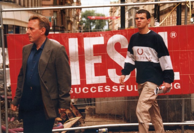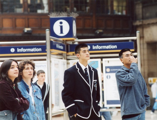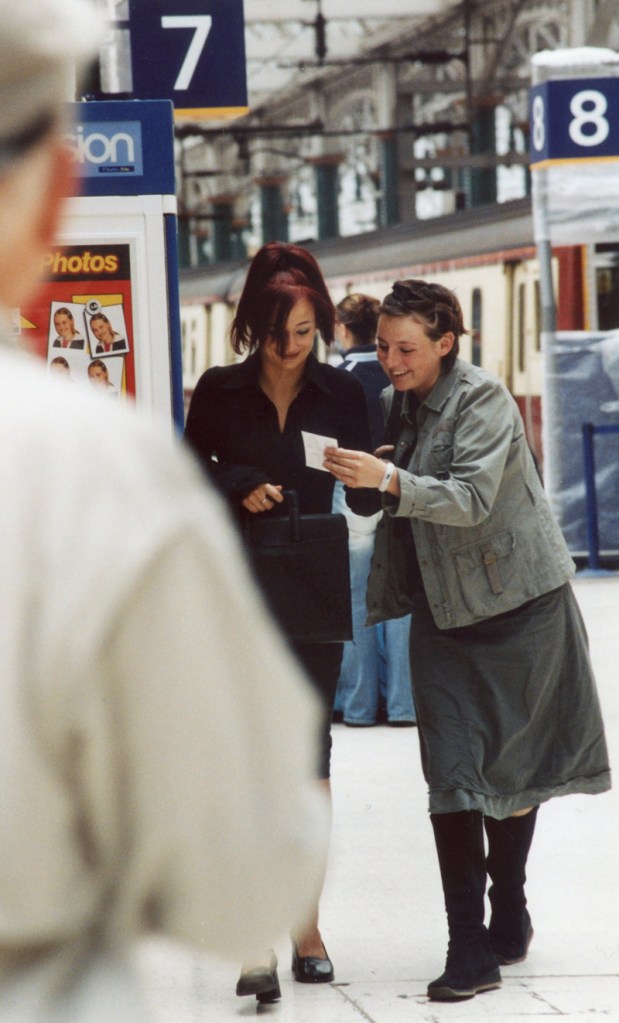 How to wear a blazor, and style your hair. Glasgow Central Station, August, 2003.