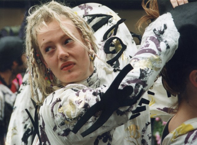 Eco demo woman, St Enoch Square, June, 1999.