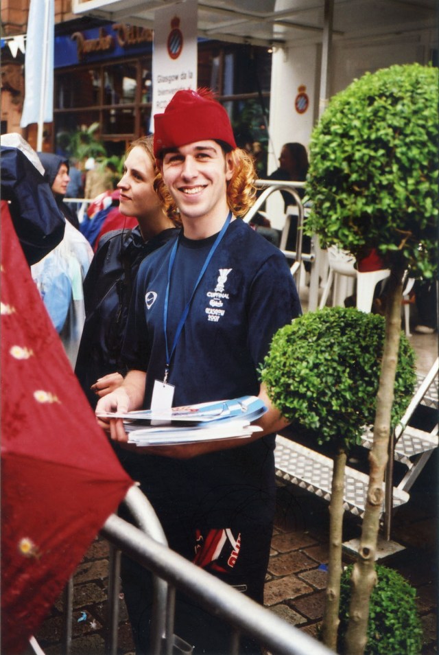 Uefa Cup final, Glasgow. 2007. Programme seller.