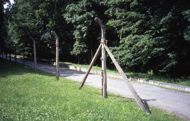 Surviving perimeter concrete fence posts of  Soviet concentration camp No.2, Buchenwald.