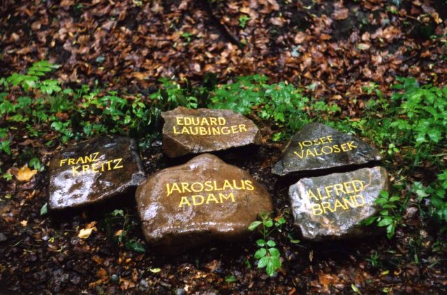 Memorial stones to four of the estimated 56,000 who died at Buchenwald.