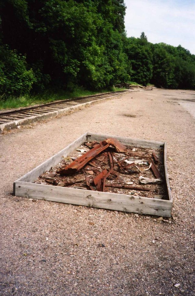 Journey’s end: the Buchenwald terminus of the railway line. In the foreground a few artifacts found during the ‘restoration’ of the line.