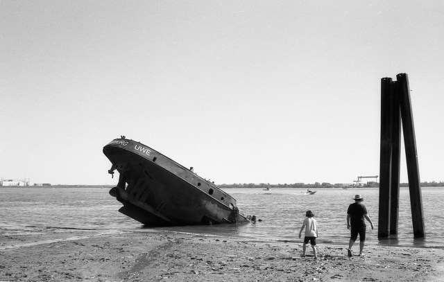 The Uwe shipwreck, Falkensteiner Ufer, Elbe, Hamburg, 2018.