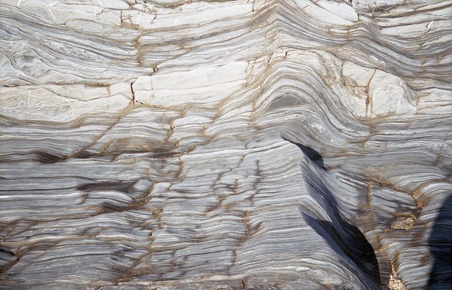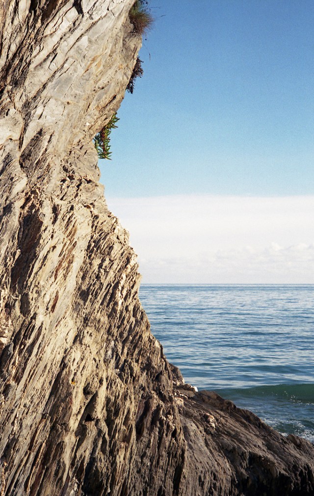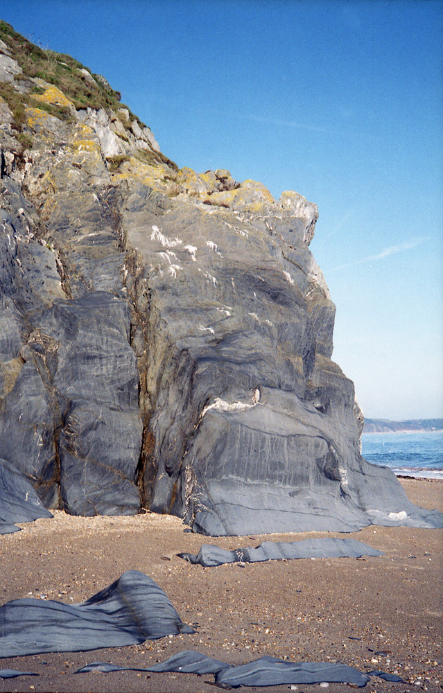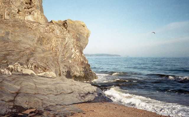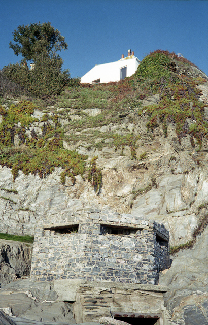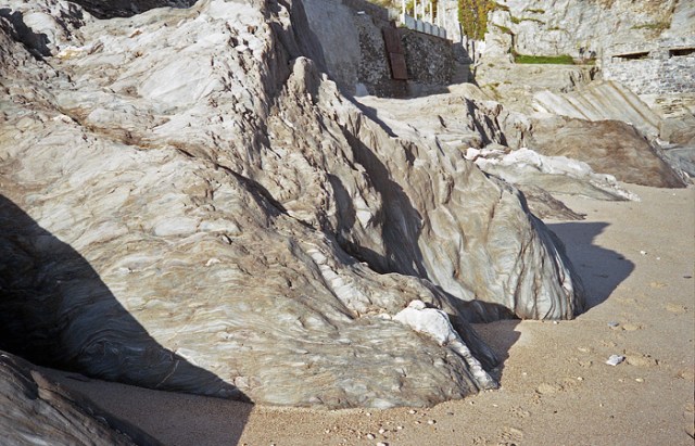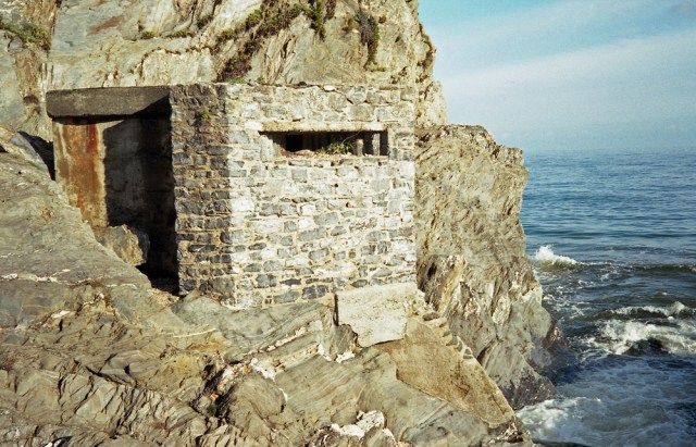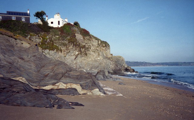 South of Torcross:  defensive World War Two buildings and interesting strata.